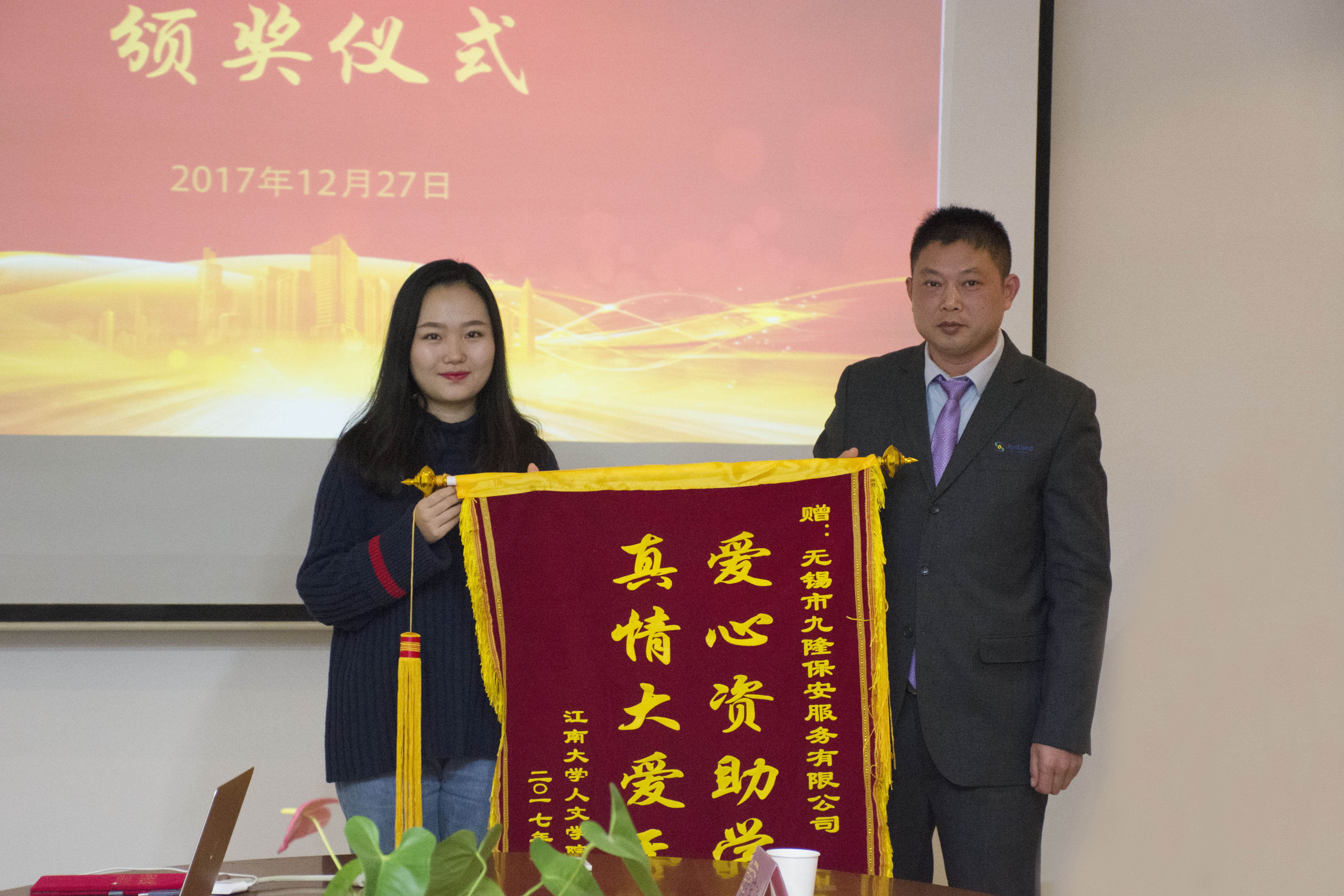 受助学子向九隆保安有限公司赠送了锦旗。