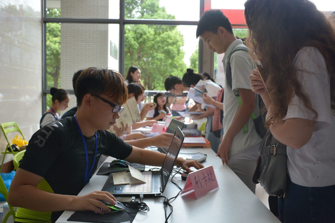在热情洋溢的志愿者引导下,田家炳楼迎来了又一届新同学们。学生工作组担任了报名现场的新生信息确认等完善工作,通过学校提供的迎新系统与新同学确认生源信息,核对照片,登录手机号,告知班级、班主任、学号等,发放校园一卡通、学费发票、新生指南等物品,解答新生在校园生活和学习上的各种问题,并进行防骗提醒。