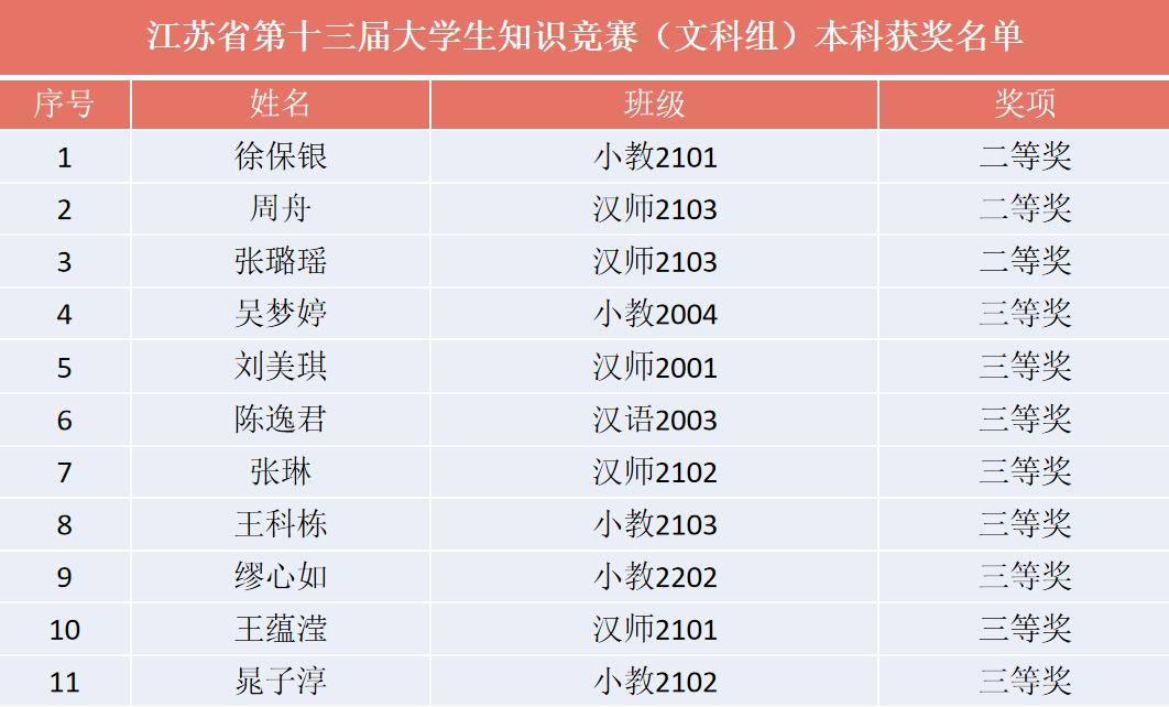 江苏省大学生知识竞赛迄今已举办十三届,文科组比赛旨在提高文科生的自然科学素养,竞赛内容以文科大学生学习、生活、未来工作所应具备的自然科学知识为主,包括理学、工学、农学、医学等知识。