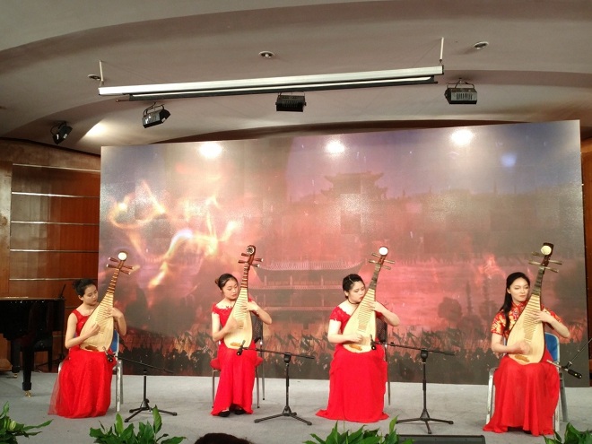 音乐系弹拨乐(琵琶、古筝)专业的同学们更是通过自己的演奏让无锡的音乐文物在舞台上“活”起来:古朴的琵琶曲《陈隋》、无锡音乐家华彦钧留世琵琶曲《大浪淘沙》、当代无锡籍著名作曲家王建民的古筝协奏曲《枫桥夜泊》、琵琶名曲《十面埋伏》等。音乐会还邀请了中国民族歌剧传承发展工程重点扶植剧目、2016江苏省文化厅重点投入剧目——民族歌剧《二泉》中的琵琶演奏尤丹老师,无锡市锡剧院演出团副团长、乐队首席主胡朱小川老师现场演示民族歌剧《二泉》中的琵琶段落和锡剧中的经典音乐片段,两位老师用精彩的演奏和多年的舞台实践经验向大家介绍了戏曲中的江南音乐元素,引起现场强烈共鸣,观众们报以热烈掌声。整场音乐会创意独特、学养丰富,许恩老师声情并茂、诙谐激情的讲解更是吸引了现场每一位观众。音乐会取得了圆满成功,是近年来不可多得的一场学术型音乐会,为江大师生和无锡市民提供了一场视听盛宴。