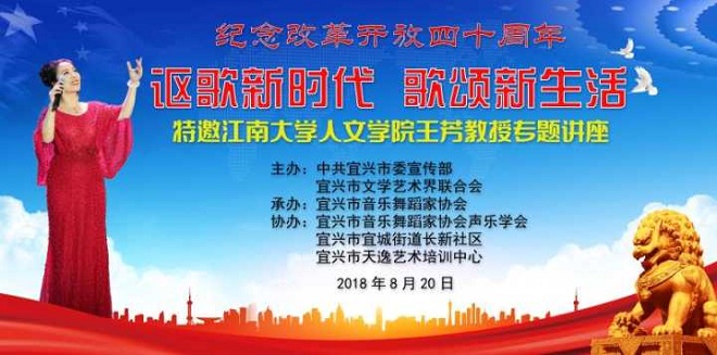 王芳教授专题讲座”在宜兴天逸艺术培训中心四楼多功能厅成功举办。宜兴市文联主席魏敏,中共宜兴市委宣传部部务委员宋昌贤,宜兴市文联秘书长吕瑞芳,宜兴市音乐舞蹈家协会黄庆忠主席等嘉宾领导,以及宜兴市音乐教师及声乐爱好者一百多人参加了本次讲座。