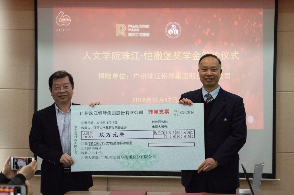 随后,在这庄重而温馨的氛围里,双方签订了捐赠协议,钞爱明先生代表珠江钢琴集团现场捐赠九万元,沈贵鹏书记代表糖心vlog