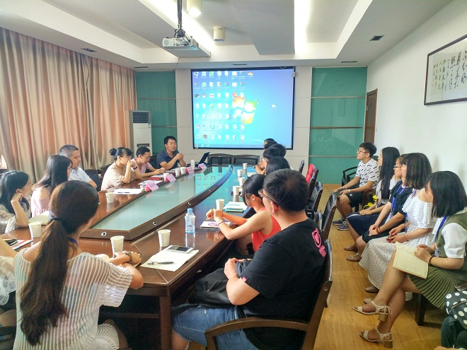 的老师们便依次开始介绍相关专业的情况。首先,杨启光老师对教育学专业进行了介绍,他主要从三个方面展开,一是学科发展历程,二是学科建设,三是师资队伍。在介绍过程中,杨启光老师对教育问题的深刻认识和见解引发了营员们的诸多思考。其次,王婧老师对教育技术专业进行了介绍,紧紧围绕教育技术研究什么、教育技术的就业方向、教育技术跨越问题这三个方面进行简明细致的介绍,给营员们留下了深刻的印象。最后,蔡爱国老师对汉语言文学专业进行了介绍,从学科硕士点的创办历史开始说起,娓娓道来,对文学专业中的导师队伍进行了详细介绍,介绍了相关老师的研究方向和内容,同时也指出了专业未来的就业方向,为营员们指引了未来发展的方向。