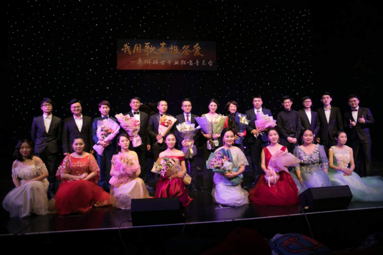 “我用歌声报答爱”是卓琳本场毕业独唱音乐会的主题,无论是前期宣传的海报,还是当天舞台的设计,以及歌曲曲目,邀请参演、出席的嘉宾等等,“报答”和“爱”始终是卓琳力图表达的重点。卓琳,本科、硕士期间师从马琼教授。马琼教授是中国高师“合唱指挥”协会江苏分会副主任,江苏省声乐学会常务理事,无锡市音乐家协会副主席,无锡市政协第十、十一、十二、十三届委员会常委。正是有马琼教授孜孜不倦的教诲与指导,才能让卓琳在专业上有如此造诣,同时也能不忘初心,懂得感恩,最终以一场真诚的、高质量的音乐会答谢师恩。唐忠宝教授作为主持人,也是音乐会亮点之一。出于对唐老师才学的敬佩,卓琳本科毕业音乐会首邀唐忠宝担任其主持人,时隔三年,正如唐老师自嘲:“二度担任主持人,将成为最懂音乐的马列老师”。这场音乐会唐老师虽然作为参演人员看似是卓琳音乐会的“筑梦人”,实际上也同样是卓琳最想要感谢的人之一,从2013年至今,六年师生缘分,两场毕业音乐会是卓琳“报答爱”的方式。正如音乐会节目单扉页上所写:“谨以此音乐会先给悉心培育与关怀我的老师、领导、家人和朋友们!”卓琳将感恩的千言万语汇入了这一场视听盛宴,观众徐先生感叹:“相信每一位莅临欣赏的人,都会感受到卓琳音乐会中真挚的感恩的心。”