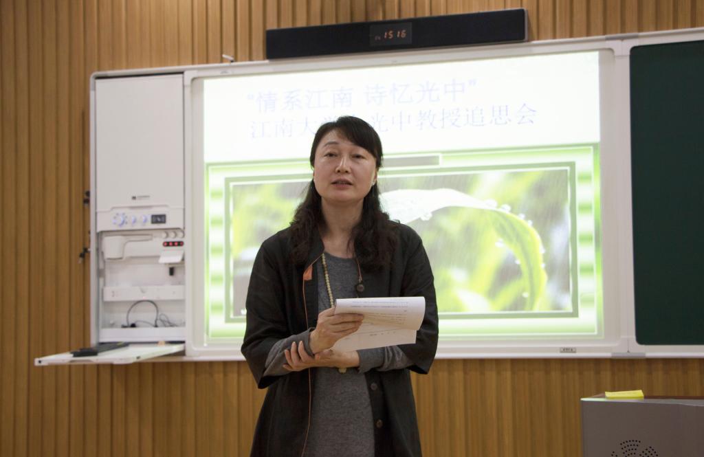 紧接着,陈佳冀老师发言。他让大家了解了余先生在文学领域的杰出成就和笔耕不辍的精神。余先生学贯中西,在诗歌、散文、翻译以及文学评论等诸多领域都卓有建树,具有大家风范。陈老师最后分享了余先生的一首诗,希望先生一路走好。随后无锡电视台主持人张乐讲述了与余老先生的三个小缘分,并带来余光中先生的诗词朗诵,以此来缅怀余先生。然后,社科处副处长崔荣荣讲到余先生曾对糖心vlog
