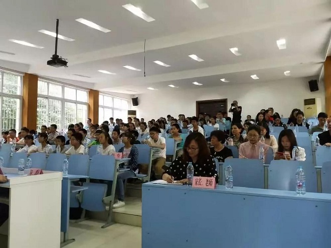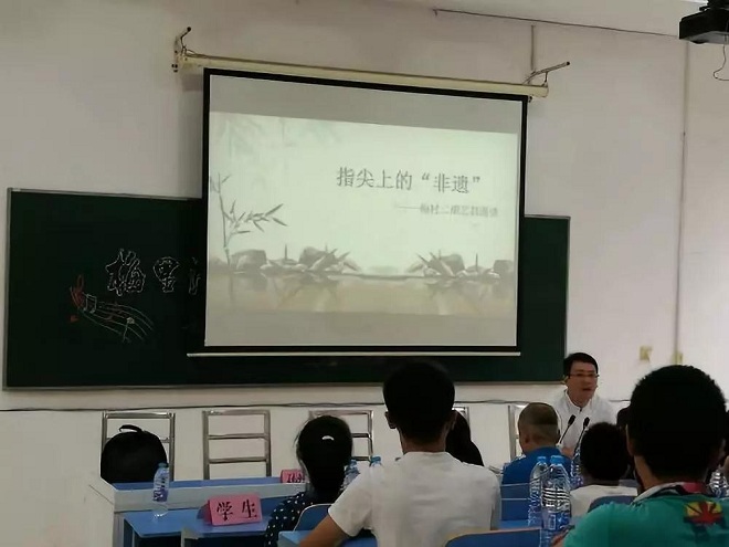 民乐实践基地之一的梅里中学梅里清音—艺术专题讲座。新吴区中学的音乐老师、梅里清音民乐团的学生及家长代表齐聚学校阶梯教室。
