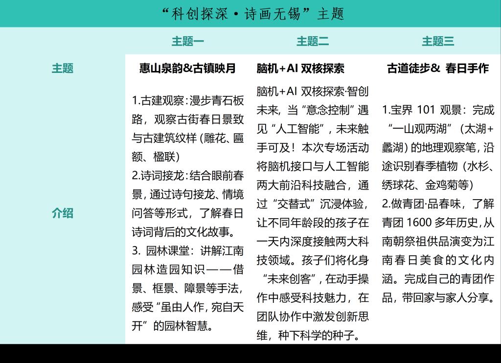 路线二:“科创探深·诗画无锡”主题研学营课程安排(4-8年级班)