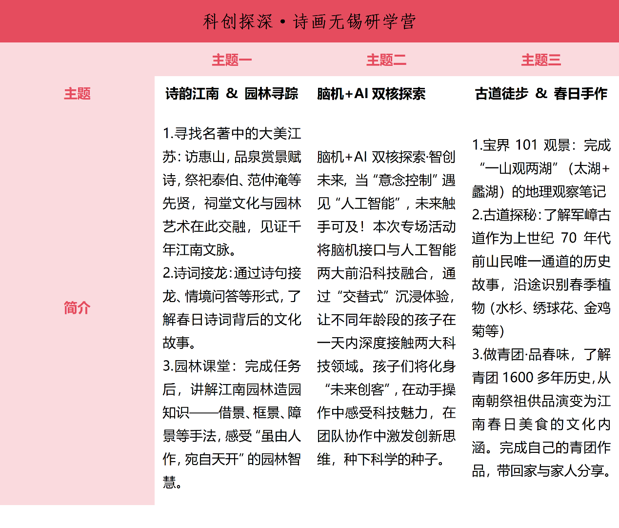 路线一:“科创探深·诗画无锡”主题研学营课程安排(1-3年级班)