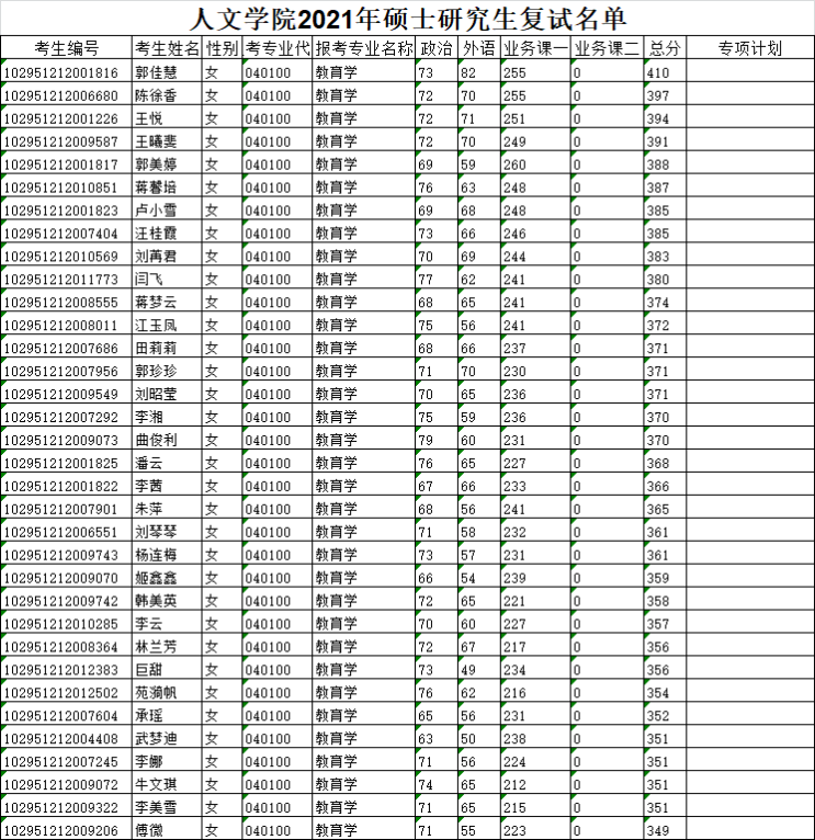 糖心vlog 2021年硕士研究生复试名单