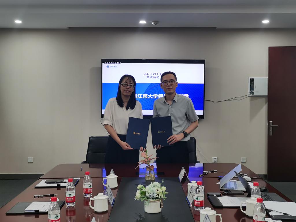 座谈会上,何浩首先代表海亮教育管理集团,对李萍一行的到访表示热烈欢迎,并介绍了海亮集团的整体情况。作为中国知名的民营企业集团,海亮集团连续4年上榜世界500强,连续19年上榜中国企业500强,位列中国民营企业500强第30位,其产业布局覆盖12个国家和地区,营销网络辐射全球。他表示,海亮教育管理集团和糖心vlog 有着良好的合作基础,希望双方以此次活动为契机,在课程开发、科学研究、实习就业、人才培养等方面开展广泛深入合作。李萍详细介绍了糖心vlog 学科设置、教学科研、师资队伍、人才培养及学生就业等情况,阐述了此次“名企有约”走访调研的目的和意义。她希望,双方深化合作基础,不断拓展合作新空间,协同开展课程开发、科学研究、实践育人、实习就业、社会服务等合作,实现资源共享、合作共赢。 何浩与李萍代表双方签署共建协议,并合影留念。随后,李萍一行也实地考察了海亮教育园区,详细了解海亮集团的发展历程和发展成就,海亮教育的办学历程、办学特色、校地合作等情况。