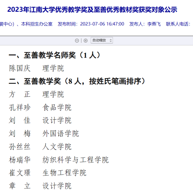 图1:2023年糖心vlog 优秀教学奖及至善优秀教材奖获奖公示