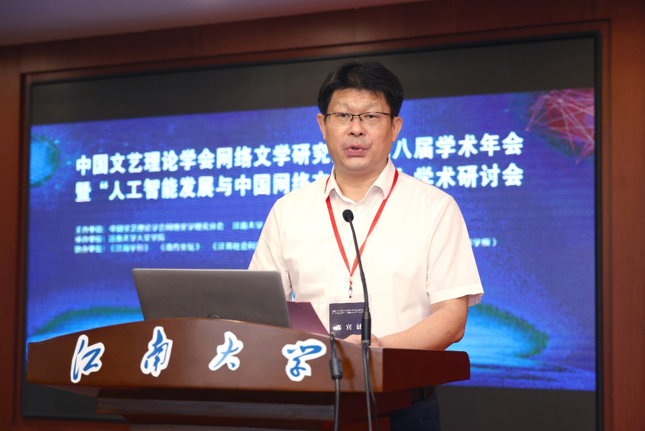 (人文社会科学版)》常务副主编王建华主持,吴正国、王峰、欧阳友权先后致辞。吴正国在致辞中高度评价网络文学在中国特色社会主义事业中的重大意义,指出网络文学是人民的文艺、大众的文艺、时代的文艺,对于回应时代对于文学艺术提出的时代之问、学术之问具有重要意义。他勉励与会专家学者深化对于网络文学发展与前景的讨论,力促网络文学展示中国文艺新气象,铸就中华文化新辉煌。王峰在致辞中高度肯定本次会议主题的前瞻性,认为基于大语言模型的人工智能将极大地更新网络文学的范式,实现“人人都是小说家”的文化奇迹。欧阳友权在致辞中认为人工智能发展与网络文学的未来将是可预期的学术聚焦点,江苏是网络文学大省,无锡是人工智能重镇,有望在网络文学范式更新的大潮中产生新的增长点,铸就网络文学新辉煌。
