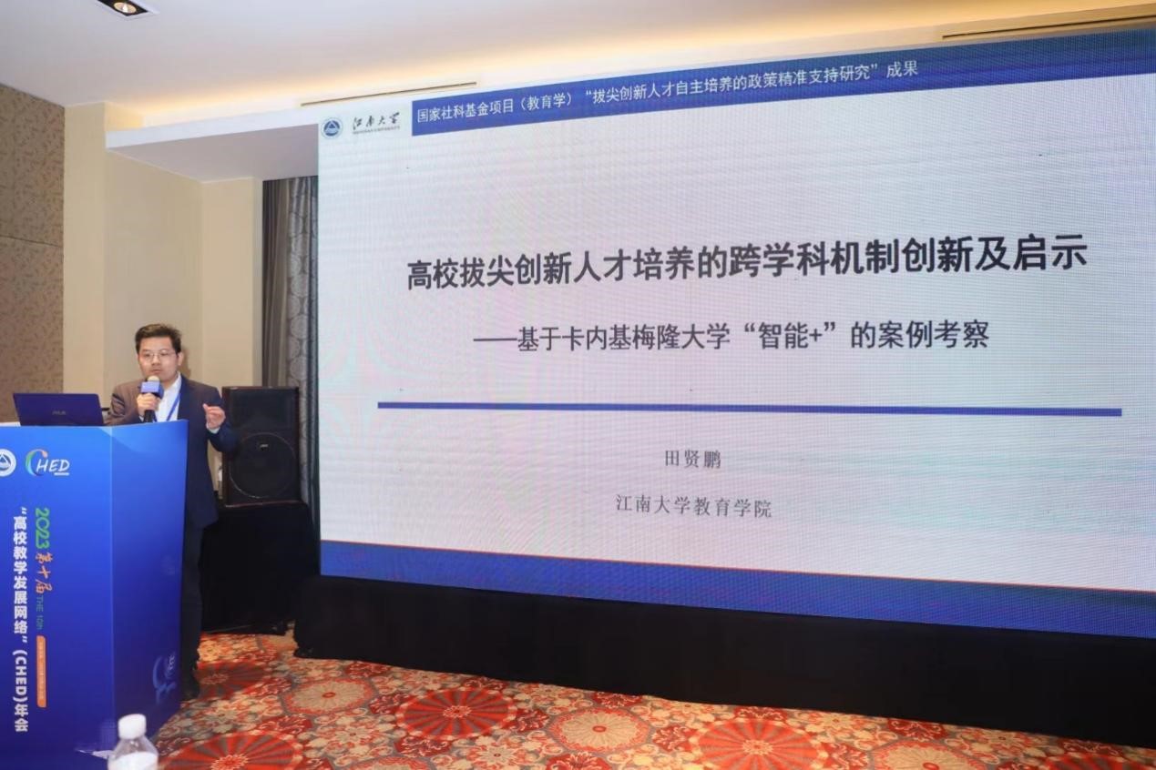 田贤鹏副教授作了“高校拔尖创新人才培养的跨学科机制创新及启示”分会场报告,该报告基于卡内基梅隆大学“智能+”的深度案例考察,分析了拔尖创新人才培养的跨学科创新举措和特征逻辑,认为跨学科协同是拔尖创新人才培养的世界趋势,并从纵向贯通机制、横向协同机制、跨区域跨国别机制维度讨论了改革争议与启示。