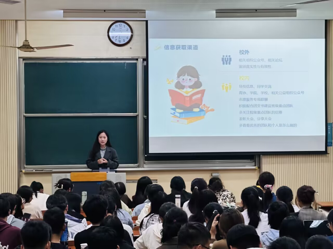 在交流互动环节,同学们踊跃提问。她们亲切耐心的讲解让同学们在脚踏实地、夯实基础的同时也能明确赛道、有所侧重,注重全方位、多层次、宽领域的个人提升。优秀朋辈指引为新生们打开了一扇窗,让大一同学们借此机会了解了优秀学长学姐的学习生活方式,对适应大学生活帮助良多。