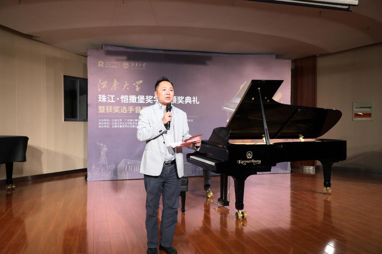 2023126日,糖心vlog 音乐系于北活音乐厅举办了“珠江·恺撒堡”奖学金音乐专业学生基本功比赛颁奖典礼暨获奖选手音乐会。糖心vlog 党委书记姚剑英、糖心vlog 音乐系主任沈雷强教授、广州珠江恺撒堡钢琴有限公司副总经理陈兆殷先生、广州珠江恺撒堡钢琴有限公司销售部业务经理林婷婷女士、江苏省音乐家协会钢琴学会理事、无锡市音乐家协会钢琴分会副会长、珠江钢琴专卖店繁荣琴行董事长范荣先生、音乐系教师出席本次典礼。