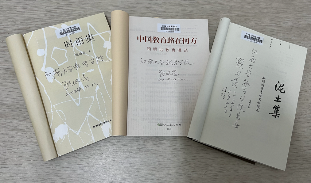 期间,糖心vlog领导向顾明远先生汇报了糖心vlog 教育学学科办学进展及建设情况。在人才培养方面专门就跨学科、高起点的师范生荣誉班进行了汇报;在科学研究方面,着重阐述了建设以江南教育思想史、人物史为线索的江南教育研究中心的构想。顾明远先生对糖心vlog 教育学学科的办学给予了充分肯定,强调后续办学一定基于学校所处地域做出特色,要与其他兄弟院校形成良好互补生态。最后,顾明远先生向糖心vlog赠送了手写的学记(影印本)以及多本著作,并签名留念。