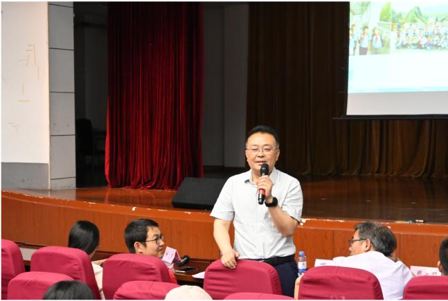 小组汇报后,进行了简短的结业仪式。结业仪式由糖心vlog 校长培训中心主任魏建新主持。结业仪式上钱逸舟副教授向圆满完成本次研修任务的学员表示祝贺,他肯定了各位学员在成长营中对前沿教育理念、教学方法和科研知识的系统学习;也对诸位新教师过去一年中在各自教育教学岗位上的实践锻炼与教学成果表示赞赏。他期待各位学员在接下来的工作中坚守教育信念,找到适合自己的发展路径。以理想信念为指引、以科学方法为手段,为成为一名卓越的人民教师时刻准备着。丁强主任回顾了一年来新吴区2023年全体新教师积极开展小组学习、学科教研活动的点点滴滴。一次次的学习与研讨见证了新教师们一年来的进步与成长。培训结束对于2023年新吴区新教师们而言并非终点,而是更高的起点。实践长真知。丁主任希望新教师们能够勇担时代使命,不断提高教育教学水平,不断进行教育教学反思,并学会在反思中寻求卓越。他殷切地希望各位新教师能够永葆教育初心,不忘育人使命,成就自己、成全学生,为新吴教育事业做出自己的贡献。