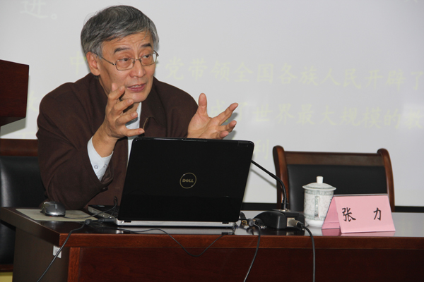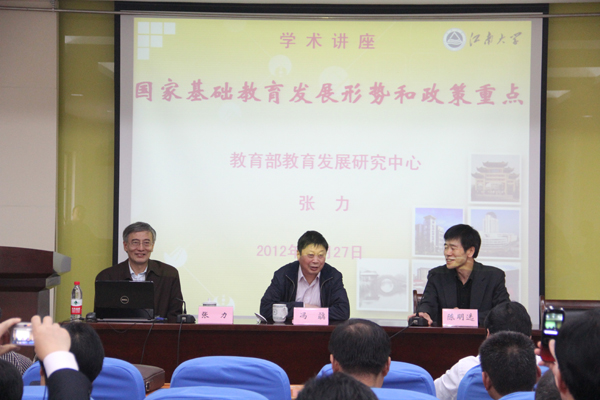 2012年10月27日下午,教育部教育发展研究中心张力主任应邀在田家炳楼209室为“江苏省高中优质发展与教育家办学”专题培训班的学员做了题为“国家教育发展形势和政策重点”解读报告。报告会由学校冯骉副校长主持。无锡市区教育局有关人员、糖心vlog部分师生等近200人 参加了聆听。