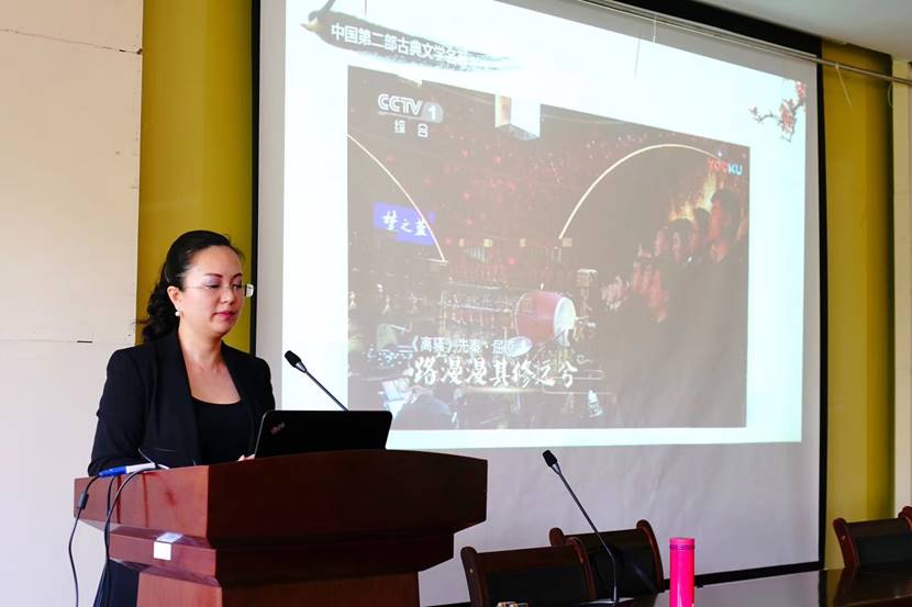 音乐作为一种艺术的表现形式,其魅力远远超乎想象。从音乐的角度欣赏古代文学作品,更是别有一番风情。孙导两个小时的讲座,让在座的每一位学子都被深深吸引,现场互动也十分活跃。讲座从甲骨文的转变、黄帝时期开始的古代诗词顺着历史发展的轨迹一直到清朝诗词歌赋,学生们不仅欣赏了国内许多艺术大家对于古典文学的艺术创作作品,也欣赏到了孙导在自己的晚会中将中西方不同的艺术表现形式——中国的昆曲和西方的歌剧进行糅合创作。这是一种创新,作为当代的大学生,拥有一颗真诚和创新的心态去面对艺术、探索艺术也是孙导所带给我们的感悟。