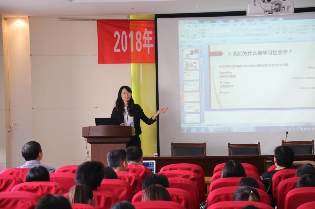 讲座伊始,田院长代表糖心vlog对刘鹏教授和殷越博士的到来表示了热烈欢迎。随后,殷越博士围绕“教育社会学视角分析名校毕业生如何另辟蹊径走进农村教育”进行专题讲座。殷越博士以自身海外留学经历引出社会学,向在座师生解释了何为社会学以及何为身边的社会学。接下来殷越博士与大家共同解读了布迪厄相关理论、探讨研读理论与实践运用之间关系以及对名校学生走进乡村教育的看法。