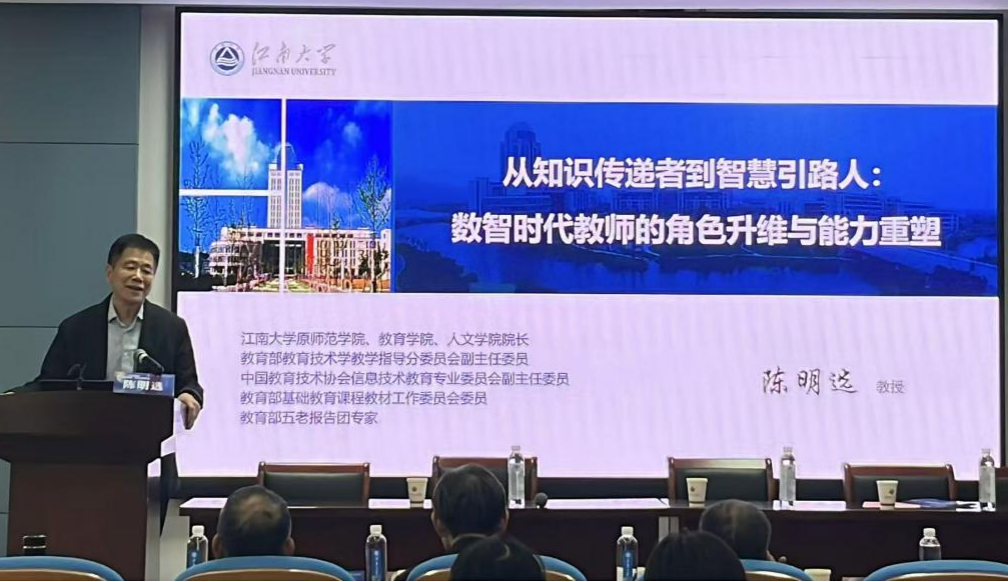 陈明选教授作了《从知识传递者到智慧引路人:数智时代教师的角色升维与能力重塑》的报告。他指出,数智时代教育正从“技术叠加”向“范式革命”转型 。面对AI带来的“知识权威”解构等挑战,教师需实现角色升维,从传统 “知识传递者” 转变为学习引导者、情感联结者的“智慧引路人”,并进一步构建了涵盖数智素养、教学设计力、持续学习与创新力等的教师五维能力图谱。在实践路径上,教师个体要转变心态、补齐能力短板等,院校需营造支持性文化、提供培训等。最终强调数智时代教师核心价值是 “育人育心育智”,终极指向培养 “转识成智” 的完整生命。