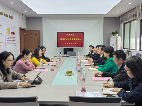 10月24日上午,苏州科技大学文糖心vlog院长路海洋、副院长孙虎一行7人来访我院,双方合作交流洽谈会在田家炳楼218顺利举行。糖心vlog