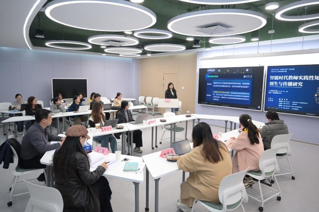 2025年11月23日,我院王志军教授主持的国家社科基金全国教育科学规划项目:“智能时代教师实践性知识创生与传播研究”开题报告会顺利举行。项目聚焦智能时代教师专业发展的核心命题,旨在深度挖掘智能时代教师知识观和角色转变,以联通主义和创新扩散等理论为指导,探索AI生态中人机协同的教师实践性知识创生和传播机制,形成涵盖认识论、专业发展路径和具体实践方法与策略的理论体系。